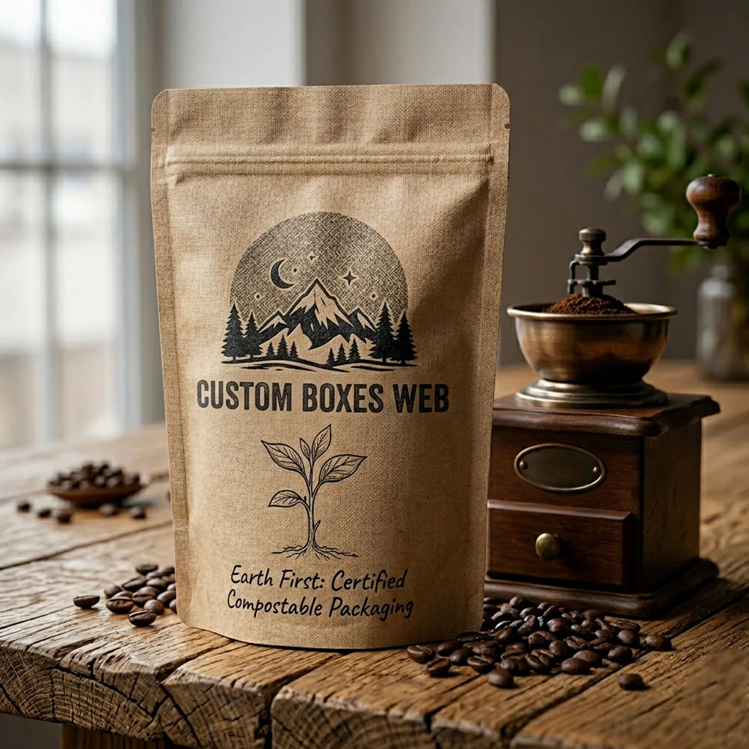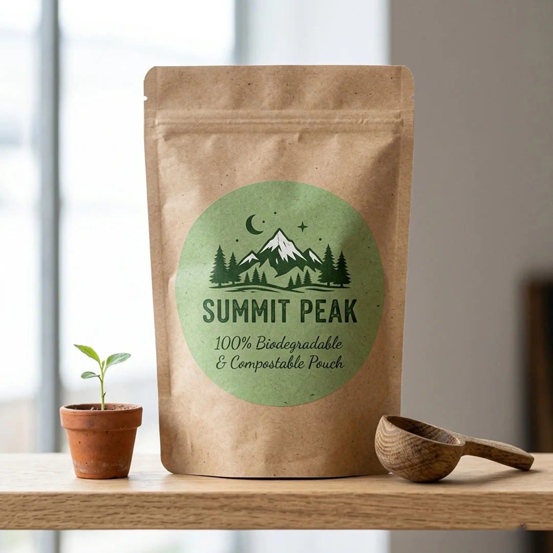 We prioritize the chemical stability and physical freshness of your inventory without compromising on environmental ethics. For this reason, we use high-density PLA (Polylactic Acid) or wood-pulp based laminates that create an impenetrable shield against UV rays and humidity. This material features a high tensile strength that naturally resists punctures and tears during shipping. Consequently, your products stay perfectly preserved and “smell-proof” from the warehouse to the customer’s pantry. You can choose from earthy matte Kraft finishes or smooth white compostable surfaces. Both options provide excellent structural integrity. As a result, your packaging remains firm and professional-looking without the use of traditional petroleum-based plastics.
